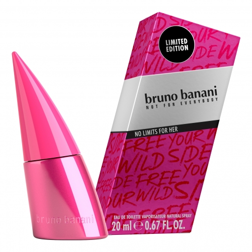 Bruno Banani ponovno širi svoj nabor dišav in predstavlja dve novi Limited Edition dišavi No Limits (zanjo in zanj). Klasične dišave Bruno Banani Man in Woman se že pojavljajo kot samozavestne, nekonvencionalne in z veliko humorja. Februarja 2018 pa gre Bruno Banani celo dlje! S parfumoma No Limits For Him in No Limits For Her ne bo več meja med vročimi in divjimi nočmi, ki bodo razkrile tvojo notranjo divjo stran. Novi Limited Edition dišavi bosta vrhunec tako v kopalnici kot tudi na tvoji koži.