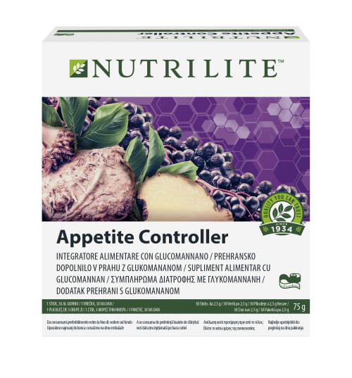 Amway NUTRILITE™ Appetite Controller je razburljiv nov izdelek in se uporablja kot prehranski dodatek. Apetit zmanjšuje tako, da omejuje velikost obrokov in zagotavlja občutek sitosti. Z nadzorom nad apetitom lažje nadzorujete tudi telesno težo, kar vam omogoča, da uživate v hrani, pa čeprav v manjših obrokih.