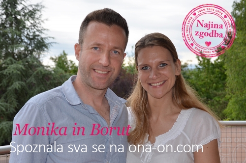 Borut je na ona-on.com po “nekaj dneh zagledal profil nasmejane simpatične punce. Spontano sem ji napisal sporočilo in kaj kmalu mi je odgovorila.” Nato sta si vsak dan dopisovala po več ur. “Z vsakim sporočilom sem bila bolj zaljubljena vanj,« pravi Monika.