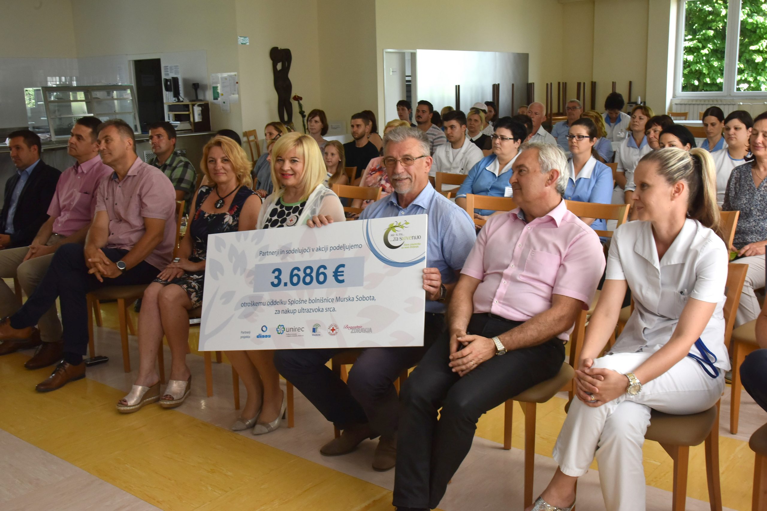 Prisotne je nagovoril tudi predstavnik UNIREC-a, g. Goran Ambrož ter doktor Bojan Korošec, direktor Splošne bolnišnice Murska Sobota, ki se je vsem iskreno zahvalil ob prejetju čeka v vrednosti 3.686 EUR za nakup ultrazvočne naprave.