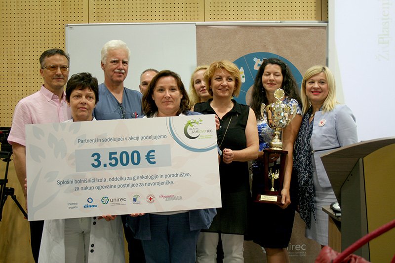Z odprodajo odpadnih plastenk PET, z dobrodelno dražbo podpisanega rokometnega reprezentančnega dresa in z SMS sporočili se je letos nabralo 3.500 evrov, donacija pa je namenjena sofinanciranju nakupa ogrevalne posteljice za novorojenčke v izolski porodnišnici. Slovesna razglasitev zmagovalne ustanove pri zbiranju odpadnih plastenk, najboljših umetnikov v ustvarjalnoraziskovalnem natečaju ter predaja vrednostnega bona je potekala v predavalnici Fakultete za vede o zdravju v Izoli.