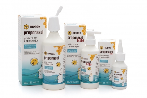 Medex Proponasal je medicinski pripomoček za čiščenje in vlaženje nosne votline z morsko vodo in propolisom. Odlikuje ga 100% naravna sestava brez konzervansov, barvil in potisnih plinov. Izotonična morska voda v kombinaciji s propolisom ustvarja naravno ravnovesje nosne sluznice, zmanjšuje njeno oteklost in s pomirjajočim, blagodejnim ter antiseptičnim delovanjem lajša dihanje.