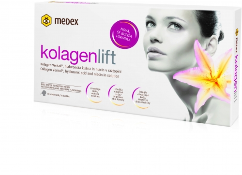 V času po dopustu več nege in pozornosti namenimo svojemu videzu. V Medexu so poskrbeli, da bo vaša koža po poletju izdatno nahranjena s Kolagenliftom z novo, še boljšo formulo. Količini kolagena in hialuronske kisline v izdelku ostajata nespremenjeni, vitamin C pa so zamenjali z niacinom, ki prispeva k ohranjanju zdrave kože. Sestavine so izbrane posebej za nego kože in ohranjanje mladostnega videza.