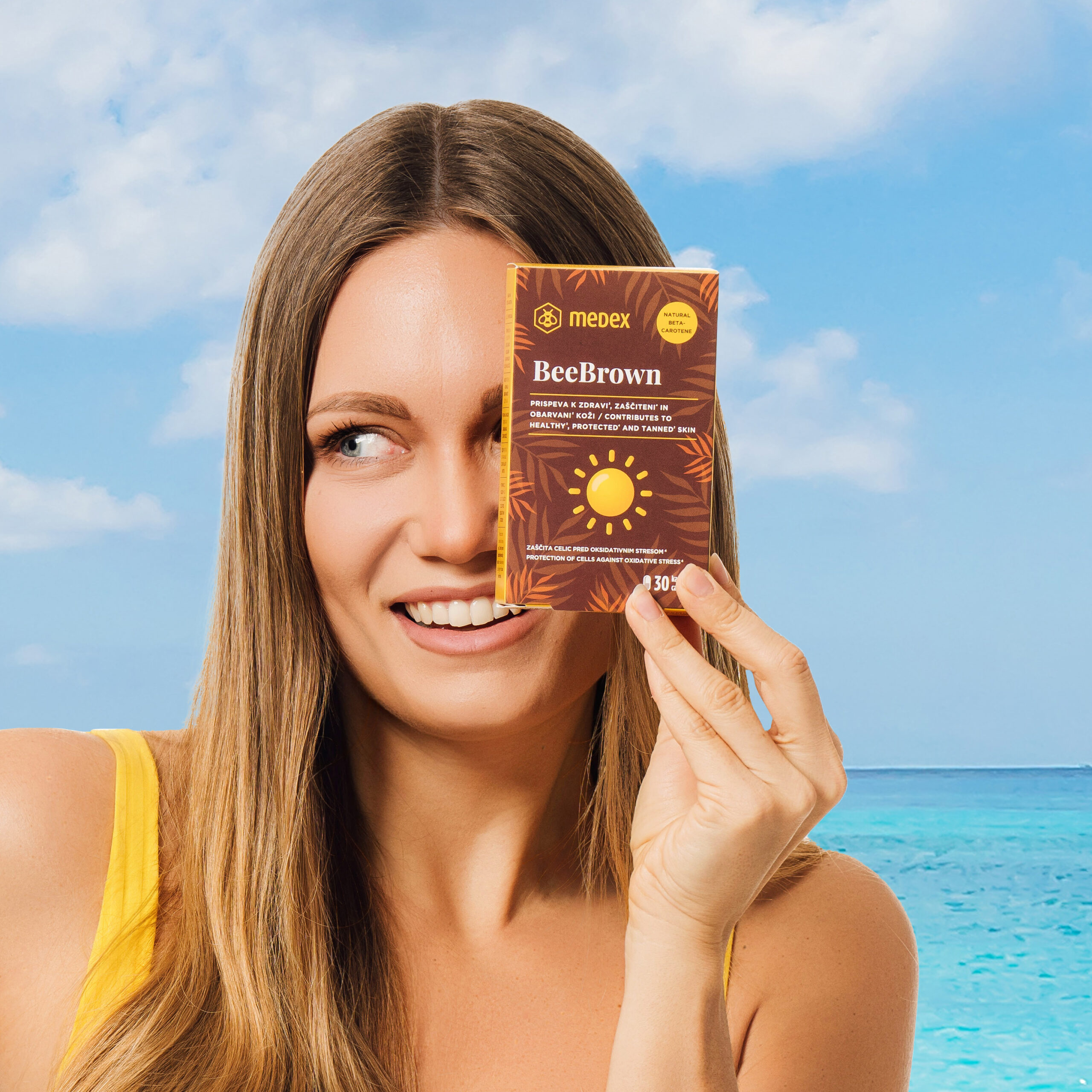 Skrivnost zdrave, zagorele kože je ravnovesje med zaščito, nego in prehrano. BeeBrown s kombinacijo beta karotena, vitaminov in antioksidantov pomaga ohranjati njen sijaj in prožnost.